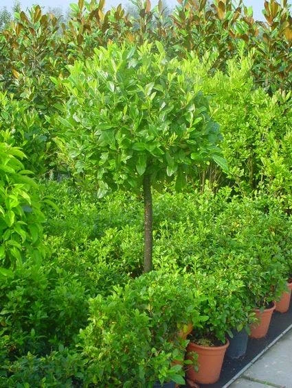 Hier is de laurier gekweekt als plant op stam.